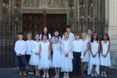 Soline AUBRY, Cléophas BRYON, Julian COLLINET, Léopoldine DELAMOTTE, Anaé DELAS FELICITE, Enéa DELAS FELICITE, Constant GRANCHAM, Hugo LALIGANT, Léna LALIGANT GOMES, Cloé MARCAIRE, Flavie MOREL, Luana PINHEIRO, Lucie REVOY ont fait leur communion le dimanche 22 juin à la basilique Notre-Dame de Gray.