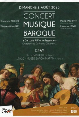 DIMANCHE 6 AOÛT - 16h00 - CONCERT MUSIQUE BAROQUE A LA BASILIQUE (1ère partie), PUIS AU MUSEE BARON MARTIN (2ème partie)