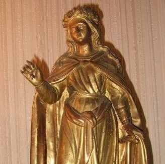 Cette statue reliquaire, de belle facture en tilleul taillé et doré à la feuille, date du XIXè siècle.
