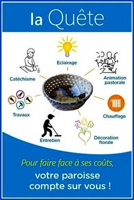 Le don à la quête est un geste de solidarité des catholiques envers leur paroisse car ce sont les quêtes qui permettent de subvenir à ses besoins : frais des services paroissiaux comme la catéchèse, le service aux malades, la solidarité, ..., mais aussi frais de fonctionnement comme le chauffage, l’électricité, le fleurissement des églises, les bougies… C’est une ressource vitale ! La quête a un véritable sens liturgique dans le déroulement de la messe. Au moment de l’Offertoire, les fidèles, par l’acte de don à la quête, offrent une partie du fruit de leur travail, chacun selon ses possibilités.