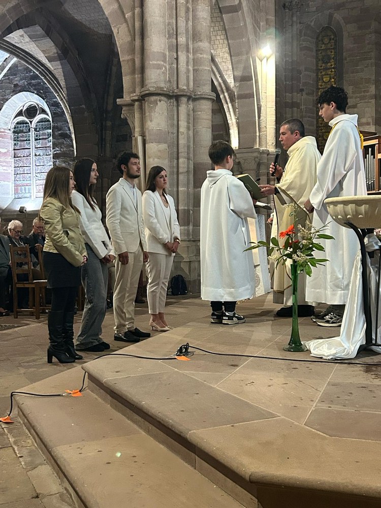 Le samedi 19 avril 2025, lors de la veillée pascale à la basilique, Emma, Salomée, Mathilde et Marceau ont reçu le sacrement du baptême. Maintenant néophytes, ils vont continuer à grandir dans la foi en Christ avec la préparation de la première communion et de la confirmation. Ce sera à la Pentecôte pour Mathilde et Marceau, et plus tard dans l'année pour Emma et Salomée qui vivront ces temps forts avec leur groupe de confirmation.
