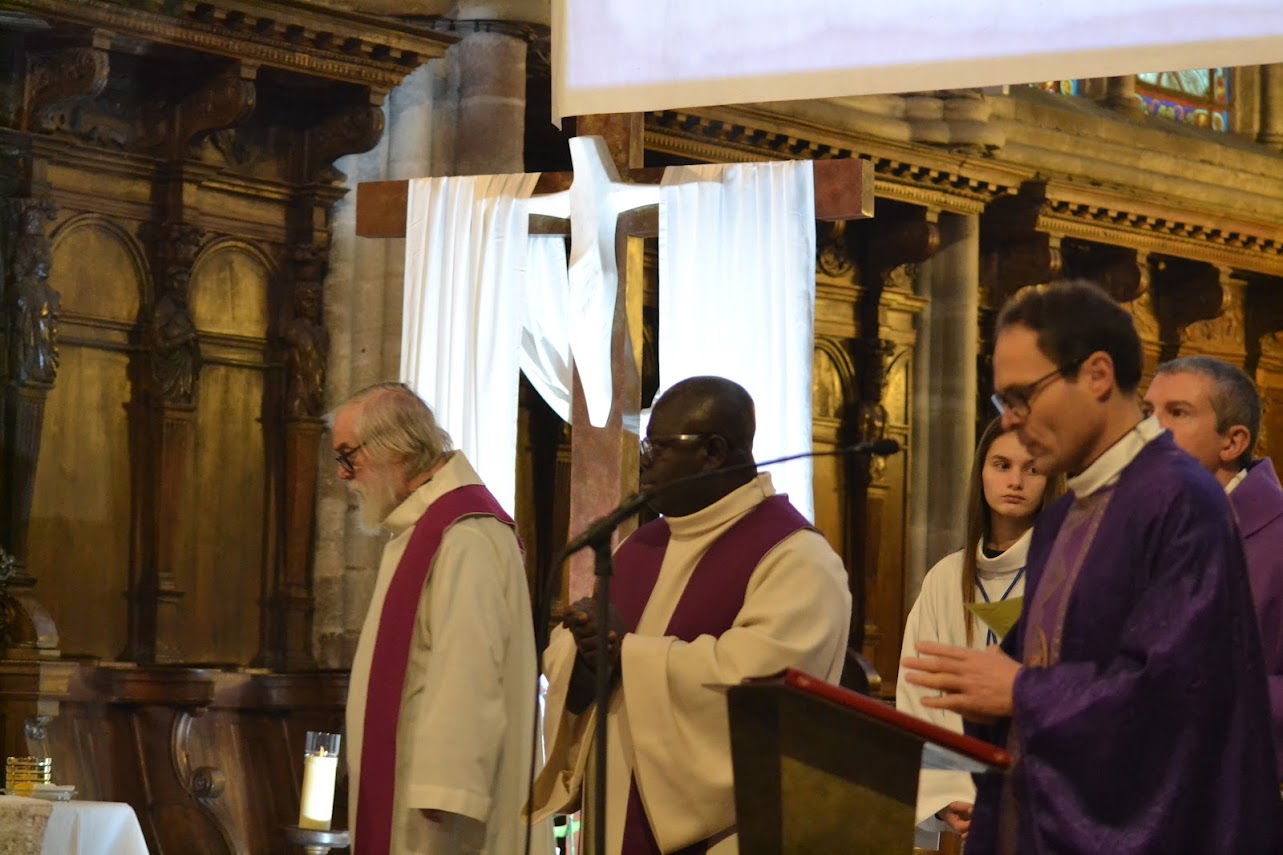 Bertille et Manoa proclament les 2 premières lectures tirées du livre d’Isaïe et de la lettre de Paul aux Romains. Intercalé entre ces lectures le Psaume 121 est chanté et le diacre proclame l’Evangile.