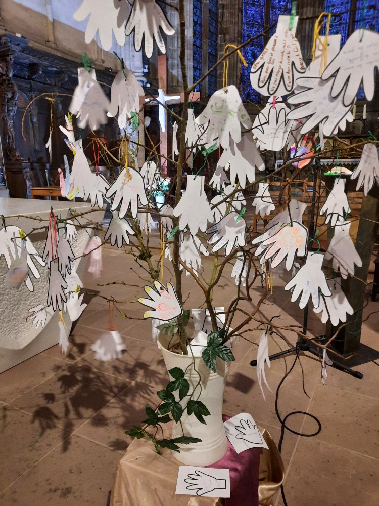 Les enfants ont ensuite été invités à écrire leur « effort de Carême » sur une petite main en papier. Toutes ces mains ont été accrochées sur un support, formant un bel arbre de gestes concrets pour avancer vers Pâques.