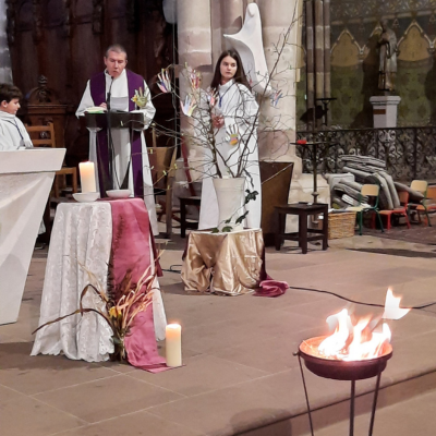 Une très belle célébration d’entrée en Carême a été vécue à la basilique, rassemblant de nombreux enfants et leurs familles. C’était une première : une seule célébration commune pour la paroisse, ouverte aussi aux enfants de passage pendant les vacances et à ceux qui avaient fait une pause au catéchisme.