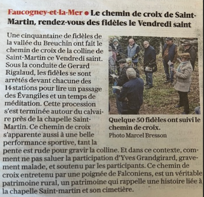 Chaque année, le Chemin de Croix qui conduit de Faucogney au calvaire près de la Chapelle Saint Martin a rassemblé des paroissiens, des marcheurs et des habitants attachés à ce lieu chargé d’histoire. En gravissant la colline et guidés par Gérard, les participants se sont arrêtés aux quatorze stations, écoutant un passage d'Evangile en lien avec la Passion du Christ avec des temps de silence et de méditation.