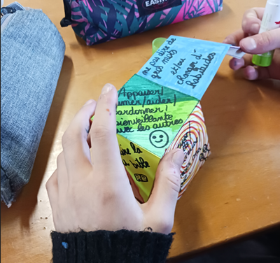 Au début du carême, on a réalisé une petite activité avec un cube. Sur les faces de celui – ci, on découvre des efforts à réaliser. Chaque jour on lance le cube et selon la face, on réfléchit et on se demande si cet effort a été facile à faire dans la journée écoulée !