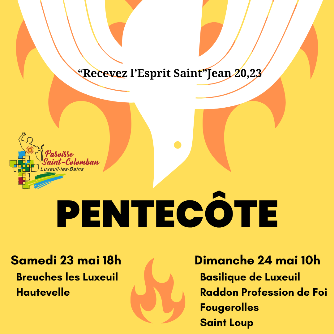 Retrouvez les horaires et lieux des messes pour la fête de la Pentecôte, dans notre Paroisse Saint Colomban.