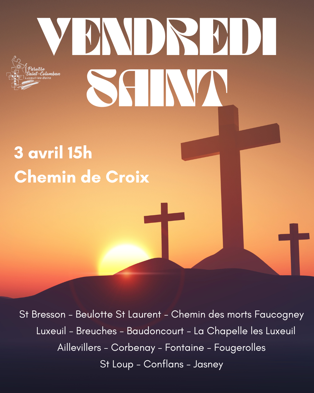 Retrouvez dans cette page les différents lieux des Chemins de Croix proposés sur notre paroisse le vendredi Saint.