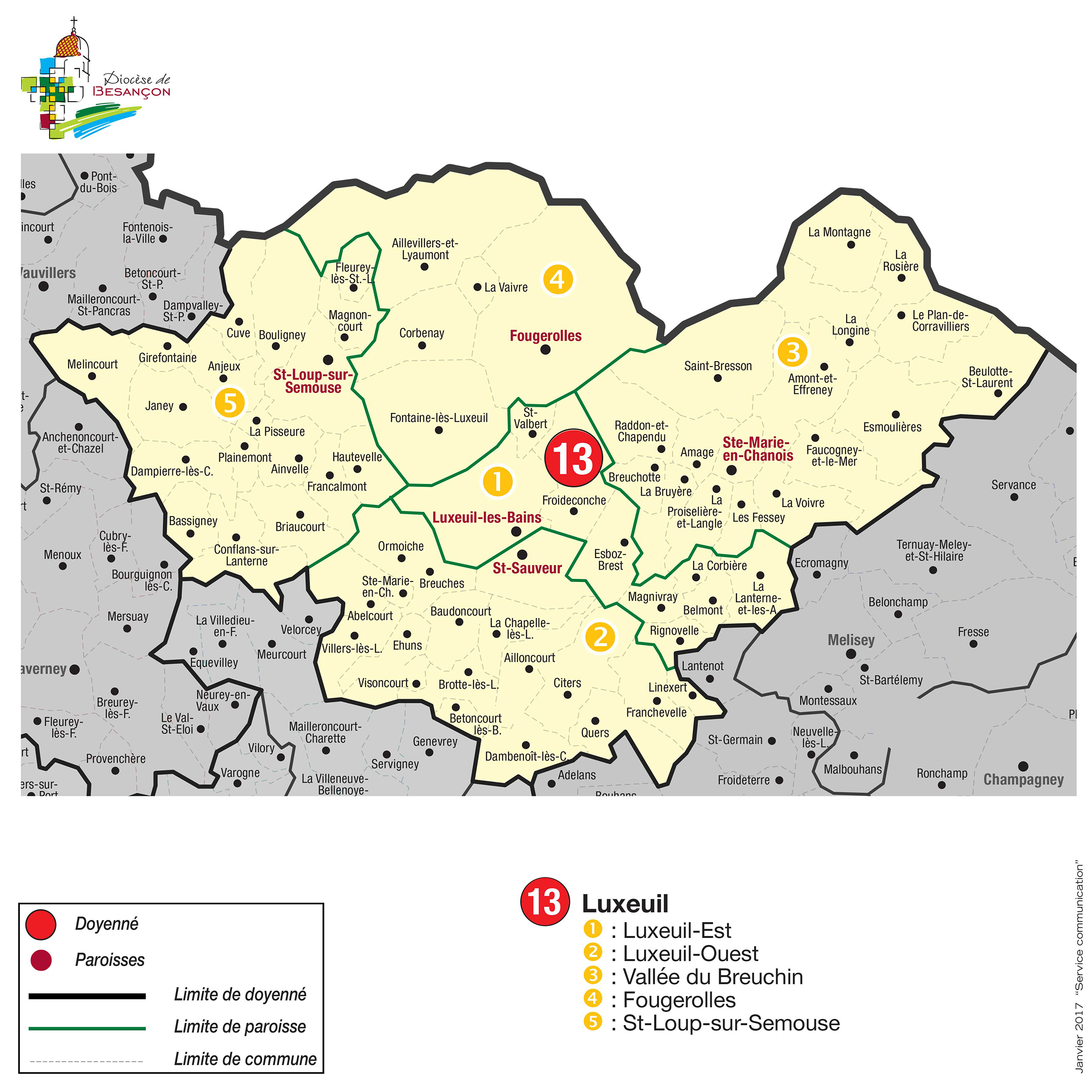 Notre doyenné s'appelle le Doyenné de Luxeuil, et il est composé de 5 paroisses :