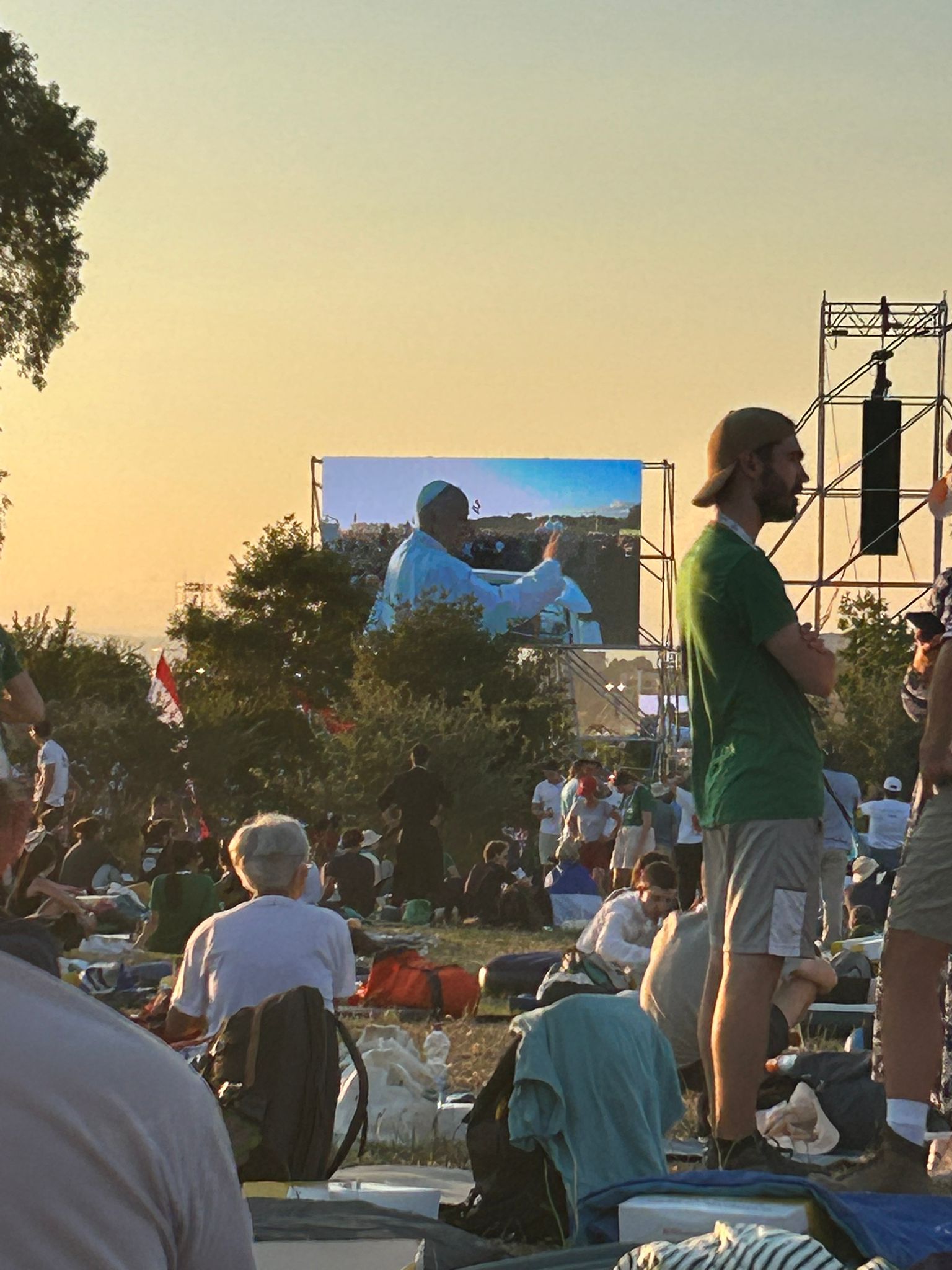 Après une marche sous la chaleur romaine vers Tor vergata, nous assistons à la veillée en présence du Saint Père Léon.