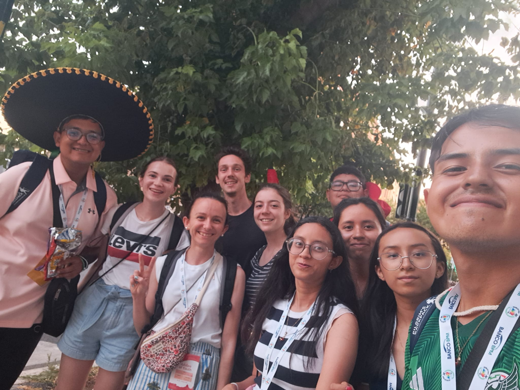Après une nuit à la belle étoile (à l'abri de la pluie grâce à notre installation), nous vivons la messe d'envoi présidée par la pape Léon (passé tout près de nous).