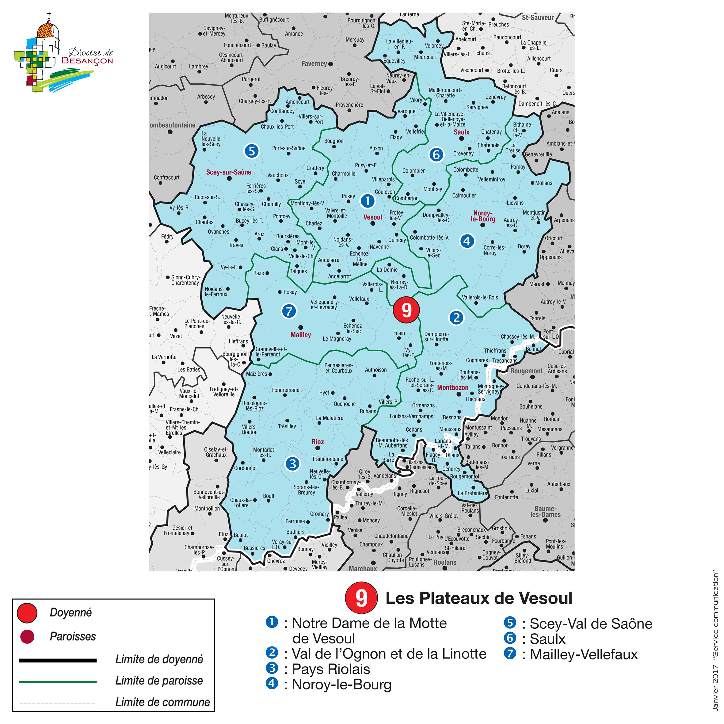 Les localités d’Équevilley et La Villedieu-en-Fontenette, jusqu’à présent en dépendance de la paroisse de Saint-Martin de Saulx-de-Vesoul sont désormais rattachées à la paroisse de la Sainte-Hostie de Faverney – Jussey.