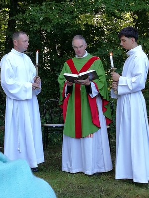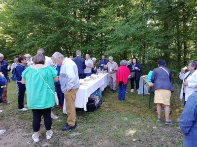 ► A proximité de l'ancienne voie ferrée, dans un très beau sous-bois, à 11h00, a été célébrée la messe par l'abbé Pierre Bergier.