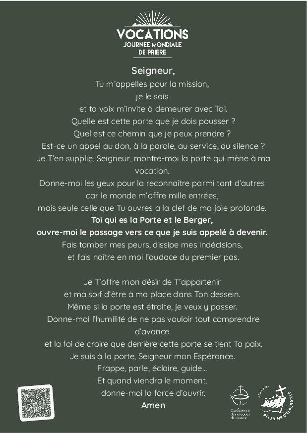Proposition de prière universelle pour la journée mondiale des vocations