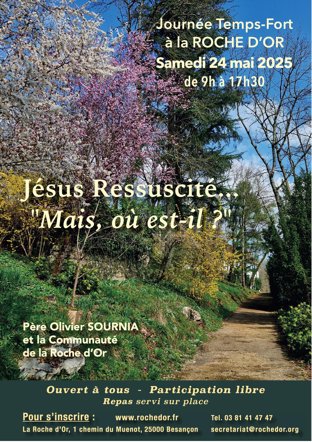 Publié le 13/05/2025Cette journée de retraite débutera à 9h00 avec un temps d'accueil, et se terminera par une eucharistie (fin vers 17h30), sur le thème « Jésus Ressuscité... mais, où est il ? »