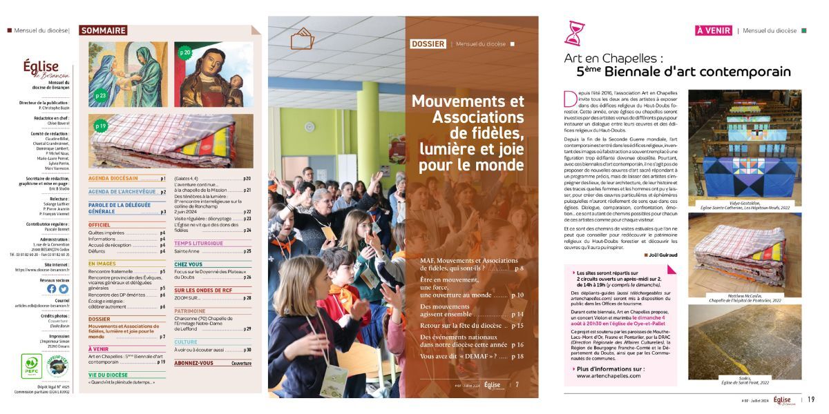 Depuis le 1er janvier 2023, la revue papier Église de Besançon a évolué dans sa forme et dans son contenu pour devenir un mensuel.
